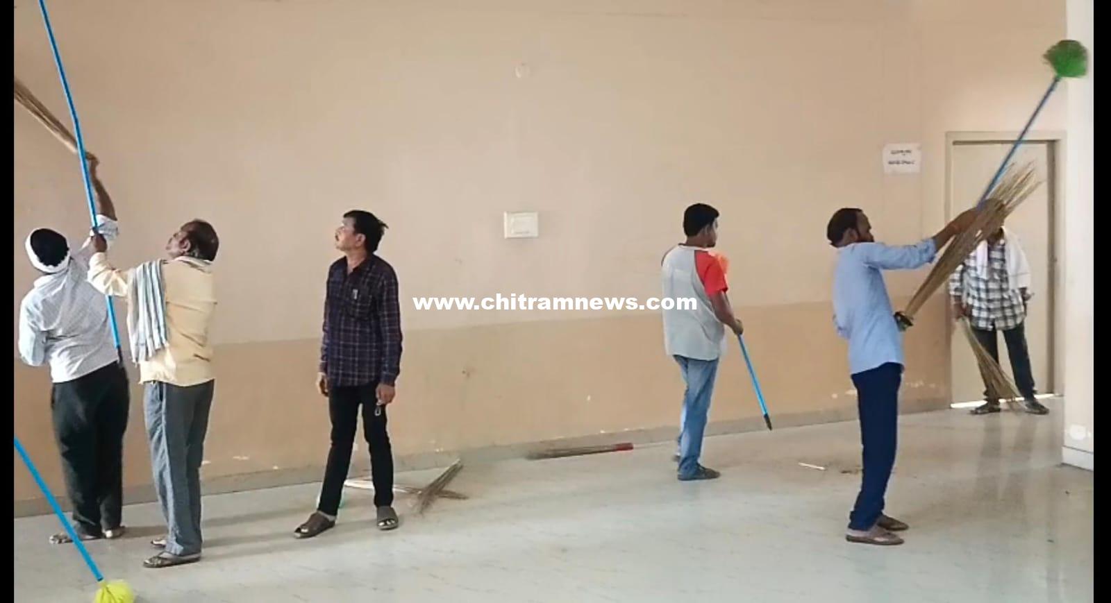 చిత్రం న్యూస్, బాసర: నిర్మల్ జిల్లాలోని బాసర డార్మెంటరీ అతిథిభవనంలో శ్రీ జ్ఞాన సరస్వతి ఆలయ ఏఈఓ గంగ శ్రీనివాస్ ఆధ్వర్యంలో 30 మంది వాగ్దేవి సొసైటీ సిబ్బంది,హుడా సిబ్బంది స్వచ్ఛభారత్ కార్యక్రమం నిర్వహించారు. భక్తులకు ఎలాంటి ఇబ్బంది కలగకుండా అతిథి గృహంలోని బాత్రూం టాయిలెట్స్ లలో యాసిడ్, ఫినాయిల్ తో క్లీన్ చేయించారు. స్నానపు గదులతో పాటు హాల్లో ప్లాస్టిక్ వ్యర్ధాలు, చెత్తాచెదారం లేకుండా శుభ్రపరిచారు. భక్తులు సద్వినియోగం చేసుకునే ప్రతి ఒక్క రూమును నీటితో శుభ్రపరిచారు. భక్తులు ఆలయ పరిసరాలను పరిశుభ్రంగా ఉంచాలని ఏఈఓ గంగా శ్రీనివాస్ కోరారు.