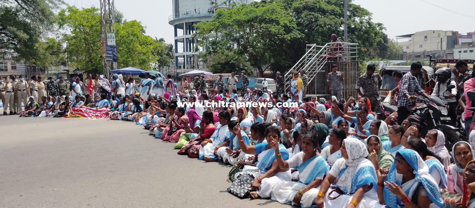 చిత్రం న్యూస్, నిర్మల్ : ఆశా వర్కర్ల సమస్యలను పరిష్కరించాలని డిమాండ్ చేస్తూ సీఐటీయూ ఆధ్వర్యంలో ధర్నా చేపట్టారు.48 గంటల ధర్నాలో భాగంగా నిర్మల్ ఆర్డీఓ కార్యాలయం ముందు ధర్నా చౌక్ వద్ద ధర్నా నిర్వహించారు ఈ సందర్భంగా సీఐటీయూ జిల్లా కార్యదర్శి బొమ్మెన సురేష్ మాట్లాడుతూ ఎండాకాలంలో రోడ్డు వేడితో ఉన్న ఆశా వర్కర్లు రోడ్డుపై భైఠాయించారు గంటపాటు ధర్నా చేపట్టడంతో భారీగా వాహనాలు నిలిచిపోయాయి.రాష్ట్ర ప్రభుత్వం ఆశా వర్కర్ల పట్ల మొండి వైఖరి అవలంబిస్తుందని వెంటనే వారి సమస్యలను పరిష్కరించి సుప్రీంకోర్టు గైడ్లైన్స్ ప్రకారం రూ. 26వేల కనీస వేతనం అమలు చేయాలని డిమాండ్ చేశారు. ఎన్నికల్లో ఇచ్చిన హామీని అసెంబ్లీలో రాష్ట్ర ప్రభుత్వం ఆశ వర్కర్లకు 18 వేలు కచ్చిత వేతనాన్ని ప్రకటించాలన్నారు. సమాజంలో ఆశా వర్కర్ల పాత్ర గణనీయమైనదని కానీ రాష్ట్ర ప్రభుత్వం పట్టించుకోకపోవడం సిగ్గుచేటని అన్నారు. కాంగ్రెస్ ప్రభుత్వం అధికారంలోకి రాకముందు ఆశా వర్కర్లకు కనీస వేతనం అమలు చేస్తామని, పని భద్రత కల్పిస్తామని, రిటైర్మెంట్ బెనిఫిట్స్ ఇస్తామని హామీ ఇచ్చి మ్యానిఫెస్టోలో పెట్టిన తర్వాత కూడా ప్రభుత్వం ఈ హామీలను మర్చిపోయిందన్నారు.వెంటనే ఇచ్చిన హామీలపై నిలబడి పరిష్కారం చేయాలని, లేనియెడల కాంగ్రెస్ ప్రభుత్వానికి వ్యతిరేకంగా పెద్ద ఎత్తున ఉద్యమాలు నిర్వహిస్తామని హెచ్చరించారు. ఈ కార్యక్రమంలో ఆశాలకు మద్దతుగా అంగన్వాడీ యూనియన్ మద్దతు తెలిపారు. యూనియన్ జిల్లా ప్రధాన కార్యదర్శి వి.శైలజ, ఆశా వర్కర్స్ యూనియన్ జిల్లా అధ్యక్షురాలు బి.సుజాత, కార్యదర్శులు పీ.గంగామణి, ఉపాధ్యక్షులు విజయ, చంద్రకళ, ఇంద్రమ్మ, నంద,సుగ్న,పద్మ, సహాయ కార్యదర్శులు, కమల, రామలక్ష్మి మంగ, శ్యామల, సులోచన, అనసూయ, జ్యోతి, వినోద తదితరులు పాల్గొన్నారు