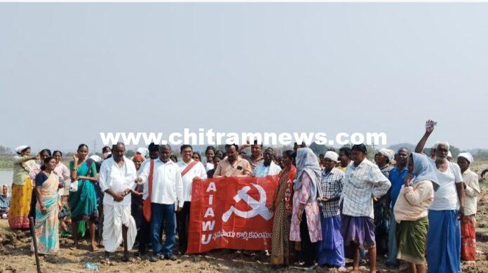 ఉపాధి హామీ పనులను పరిశీలించిన వ్యవసాయ కార్మిక సంఘం నేతలు