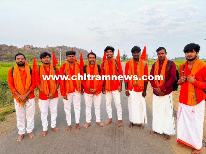 చిత్రం న్యూస్, బాసర: నిర్మల్ జిల్లా బాసర మండలం బిదిరెల్లి గ్రామానికి చెందిన హనుమాన్ మాలదారులు శనివారం బాసర శ్రీ జ్ఞాన సరస్వతి క్షేత్రంలో ప్రత్యేక పూజలు నిర్వహించి కొండగట్టుకు పాదయాత్రగాబయలుదేరారు. తెలంగాణాలో ప్రసిద్ధి చెందిన పుణ్యక్షేత్రలో కొండగట్టు ఆంజనేయస్వామి ఆలయం ఒకటి. భక్తులు కోరిన కోరికలు తీరుస్తున్న కొండగట్టు ఆంజనేయస్వామి అయితే అక్కడ ప్రత్యేకత హనుమాన్ మాల దీక్ష తీసుకున్న వారు మండల కాలం దీక్షను కఠిన నియమాలు పాటిస్తూ ఉంటారు. మాల విరమణ చేయాలంటే అంజన్న భక్తులు తమ స్వ గ్రామం నుండి ఎక్కువగా పాదయాత్ర ద్వారా కొండగట్టుకు చేరుకొని అక్కడ స్వామి వారిని దర్శించుకుని మాల విరమణ చేస్తారు. అంజన్న మాల వేసుకున్న భక్తులు ఎక్కువగా కాలినడకన అంజన్నకు దర్శించుకోవడానికి ఇష్టపడతారు. ఎందుకంటే… హనుమంతుని అంత బలశాల కావాలని అంజన్న కరుణ మనపై ఉండాలంటే ఇలా నదక ద్వారా రావడం వల్ల అనేక ప్రయోజనాలు కలుగుతాయని ప్రజల నమ్మకం. 180 కిలోమీటర్ మారంలో ఉన్న కొండగట్టుకు మండేటి ఎండలో నడుచుకుంటూ వినోద్ గురుస్వామి ఆధ్వర్యంలో కొండగట్టుకు బయలుదేరారు.