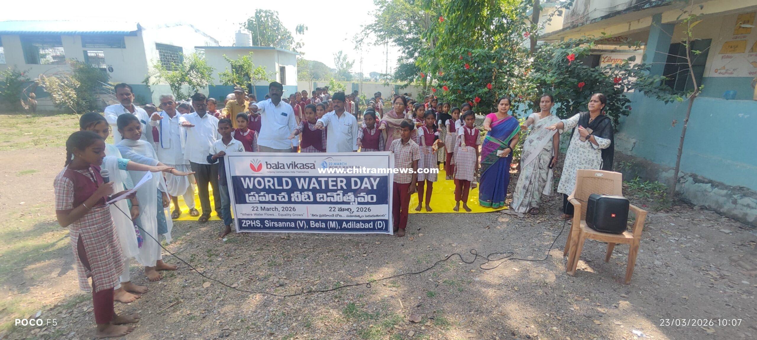 చిత్రం న్యూస్, బేల: సకల జీవరాసులకు ప్రాణధారమైన నీటిని వాడుతూ భవిష్యత్ తరాల కోసం నీటిని సంరక్షించేందుకు ప్రతి ఒక్కరు కృషి చేయాలని సర్పంచ్ క్యాతం పొచ్చక్క సురేష్ రెడ్డి అన్నారు. ప్రపంచ నీటి దినోత్సవం పురస్కరించుకుని బాలవికాస సంస్థ ఆధ్వర్యంలో సోమవారం మండలంలోని సిర్సన్న ఉన్నత పాఠశాలలో అవగాహన సదస్సు నిర్వహించారు. ఈ సందర్భంగా ర్యాలీ నిర్వహించి విద్యార్థులచే ప్రతిజ్ఞ చేయించారు..వారు మాట్లాడుతూ బాలవికాస సంస్థ ఆధ్వర్యంలో ఊరురా నీటి ప్లాంట్లను ఏర్పాటు చేసి శుద్ధ జలాలను అందించడం అభినందనీయమన్నారు శుద్ధ జలంతో పాటు యువతకు నైపుణ్య శిక్షణ కేంద్రాల ఏర్పాటు, వితంతువులకు సాయం లాంటి ఎన్నో సేవా కార్యక్రమాలు చేపడుతున్న ఆ సంస్థ సేవలను కొనియాడారు కార్యక్రమంలో పాఠశాల ఇంఛార్జి ప్రధానోపాధ్యాయులు మమత, బాలవికాస సంస్థ ప్రతినిధి నరేందర్ బోయర్, గ్రామస్తులు గోదూరి భూమన్న కృష్ణారెడ్డి, భూమారెడ్డి, ఉపాధ్యాయులు విద్యార్థులు పాల్గొన్నారు.