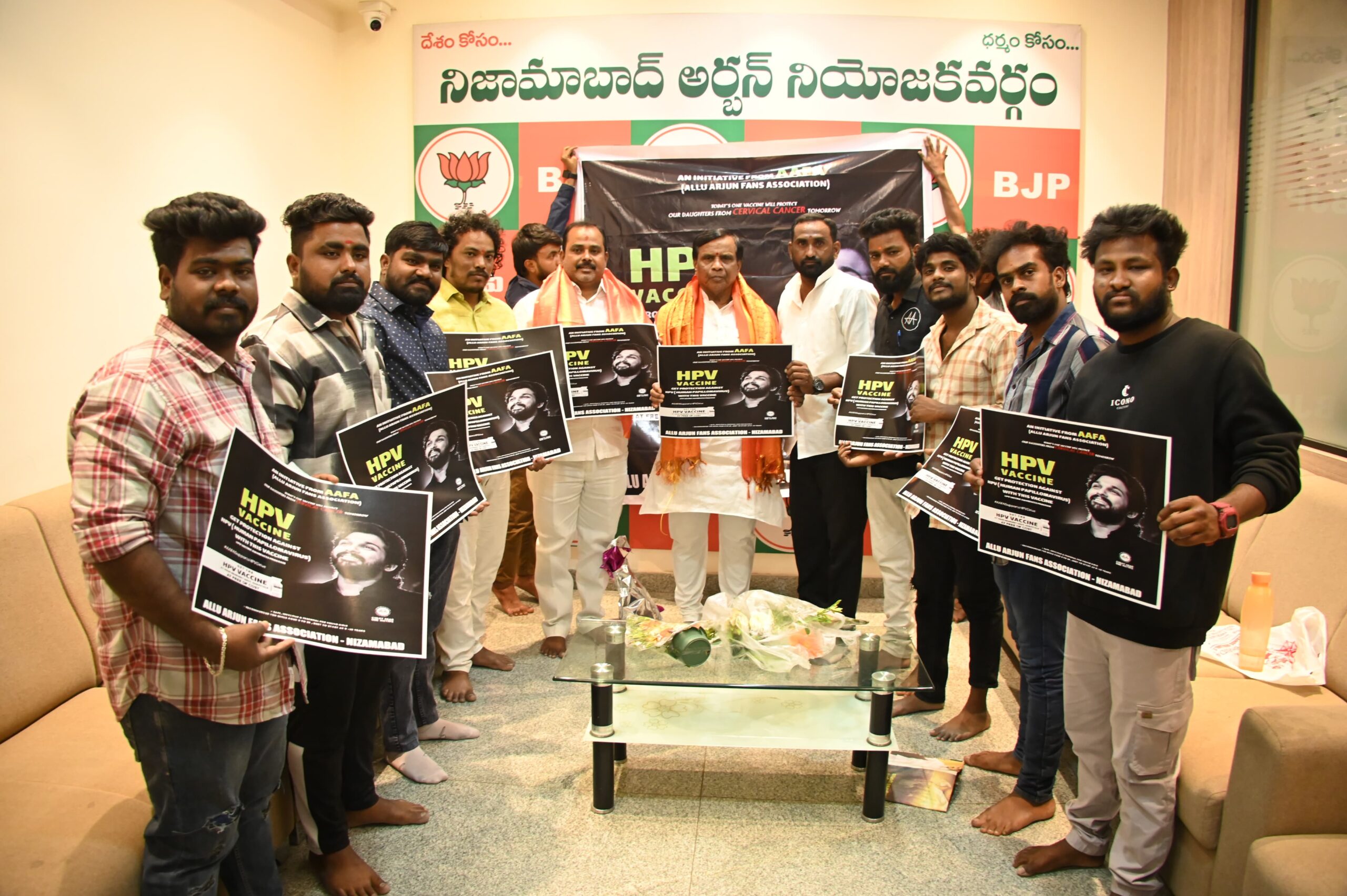 చిత్రం న్యూస్, నిజామాబాద్ బ్యూరో: ప్రతి అమ్మాయి క్యాన్సర్ వ్యాక్సిన్ కచ్చితంగా తీసుకోవాలని అర్బన్ ఎమ్మెల్యే ధన్ పాల్ సూర్యనారాయణ గుప్తా తెలిపారు. అల్లు అర్జున్ ఫ్యాన్స్ అసోసియేషన్ ఆధ్వర్యంలో చేపట్టిన ప్రచార గోడ ప్రతులను శనివారం క్యాంపు కార్యాలయంలో ఆవిష్కరించారు. ఈ సందర్భంగా ఎమ్మెల్యే మాట్లాడుతూ.. కేంద్ర ప్రభుత్వం ఆధ్వర్యంలో 9 నుంచి 26 ఏళ్ల అమ్మాయిలకు సర్వైకల్ క్యాన్సర్ వ్యాక్సిన్ అందజేస్తుందన్నారు. దీనికి ప్రముఖ హీరో అల్లు అర్జున్ మద్దతుగా నిలవడం ఎంతో అభినందనీయమన్నారు. భవిష్యత్తులో అమ్మాయిలు క్యాన్సర్ బారిన పడకుండా ఈ వ్యాక్సిన్ ఎంతో తోడ్పడుతుందన్నారు. జిల్లాలోని ప్రతి ప్రభుత్వ జనరల్ ఆసుపత్రిలో వ్యాక్సిన్ అందుబాటులో ఉందన్నారు. అల్లు అర్జున్ ఫ్యాన్స్ చొరవ తీసుకొని అవగాహన కల్పించడం సంతోషకరమని తెలిపారు. కార్యక్రమంలో బీజేపీ నాయకులు న్యాలం రాజు, అల్లు అర్జున్ ఫ్యాన్స్ అసోసియేషన్ రాష్ట్ర ఉపాధ్యక్షుడు యెండల సురేష్, జిల్లా అధ్యక్షుడు నరేందర్, దీపక్, మహేష్, కృష్ణ, కార్తీక్, గోపి తదితరులు పాల్గొన్నారు.