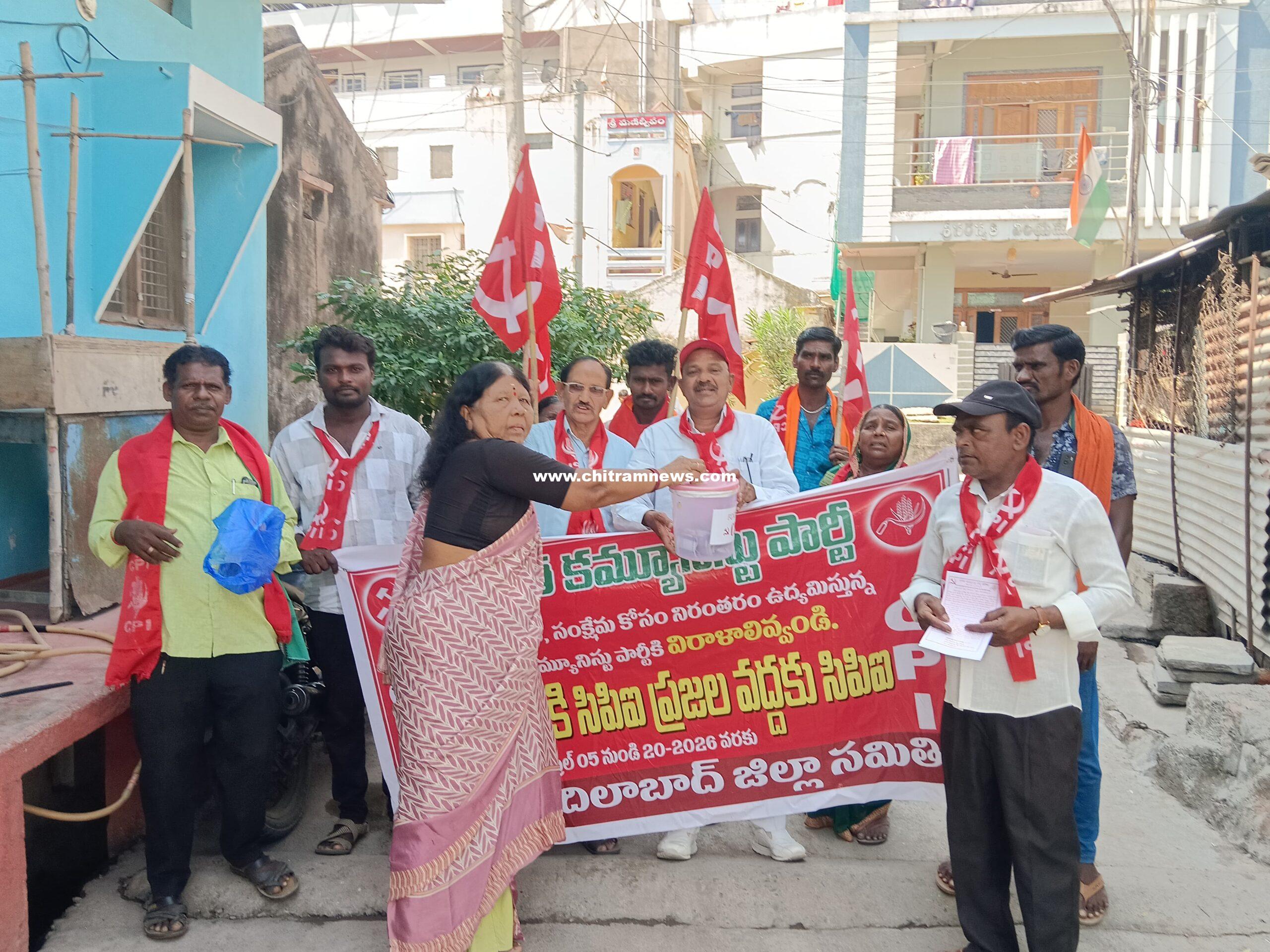 చిత్రం న్యూస్, ఆదిలాబాద్: కేంద్రంలోని బీజేపీ ప్రభుత్వం అవలంబిస్తున్న ప్రజా వ్యతిరేక విధానాలను నిరసిస్తూ, సీపీఐ ఆధ్వర్యంలో ఆదిలాబాద్ పట్టణంలోని 45వ వార్డులో సోమవారం ‘ఇంటింటికి సీపీఐ ‘ కార్యక్రమం నిర్వహించారు. ఈ సందర్భంగా నాయకులు ఇంటింటికీ తిరిగి విరాళాలు సేకరిస్తూనే, ప్రధాని నరేంద్ర మోడీ ప్రభుత్వం ప్రజలపై మోపుతున్న భారాలను వివరించారు. సీపీఐ జిల్లా కార్యదర్శి ప్రభాకర్ రెడ్డి మాట్లాడుతూ.. ప్రజల నుండి విశేష స్పందన లభిస్తోందని హర్షం వ్యక్తం చేశారు. గ్యాస్, పెట్రోల్, డీజిల్, నిత్యవసర వస్తువుల ధరలు అమాంతం పెంచి సామాన్యుడి నడ్డి విరుస్తున్న కేంద్ర ప్రభుత్వ తీరుపై ప్రజలు తీవ్ర ఆగ్రహంతో ఉన్నారని ఆయన ఆరోపించారు. ముఖ్యంగా మహిళలు స్వచ్ఛందంగా ముందుకు వచ్చి, “ప్రజల కోసం మీరు చేసే పోరాటాలకు ఎన్ని విరాళాలు ఇచ్చినా తక్కువే” అంటూ మద్దతు తెలపడం పార్టీ శ్రేణుల్లో ఉత్సాహాన్ని నింపిందని ప్రభాకర్ రెడ్డి తెలిపారు. ఈ కార్యక్రమంలో సీపీఐ సీనియర్ నాయకులు ఎస్.అరుణ్ కుమార్, దళిత కుల పోరాట సమితి జిల్లా అధ్యక్షులు,సీపీఐ జిల్లా కౌన్సిల్ సభ్యులు రామదాస్, గిరిజన సంఘం నాయకులు కొడప సురేష్, శాంతన్ కుమార్, సోను బాయ్, మహిళలు, కార్యకర్తలు పాల్గొన్నారు.