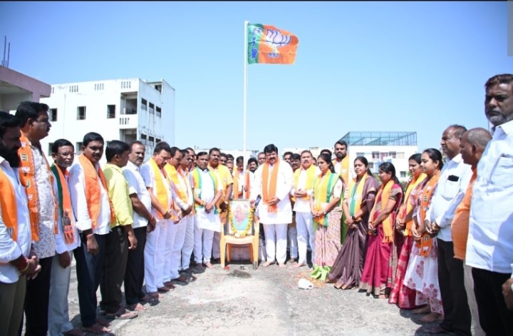 చిత్రం న్యూస్, నిజామాబాద్ జిల్లా బ్యూరో: భారతీయ జనతా పార్టీ 47వ ఆవిర్భావ దినోత్సవాన్ని ఘనంగా నిర్వహించారు. ఈ సందర్భంగా జిల్లా పార్టీ కార్యాలయంలో బీజేపీ జిల్లా అధ్యక్షులు దినేష్ పటేల్ కులచారిపార్టీ పతాకాన్ని ఆవిష్కరించారు. ఈ కార్యక్రమంలో నిజామాబాద్ అర్బన్ ఎమ్మెల్యే ధన్‌పాల్ సూర్యనారాయణ, ఇతర ముఖ్య నాయకులు పాల్గొన్నారు. ఈ సందర్భంగా జిల్లా అధ్యక్షులు దినేష్ పటేల్ కులచారి, ఎమ్మెల్యే ధన్‌పాల్ సూర్యనారాయణ మాట్లాడుతూ..బీజేపీ కేవలం నాయకుల పార్టీ కాదు, అంకితభావం కలిగిన కార్యకర్తల పార్టీ. సైద్ధాంతిక నిబద్ధతతో పనిచేసే కార్యకర్తల కఠోర శ్రమ వల్లే ఈరోజు బీజేపీ ప్రపంచంలోనే అత్యధిక సభ్యత్వం కలిగిన అతిపెద్ద రాజకీయ పార్టీగా అవతరించిందన్నారు.