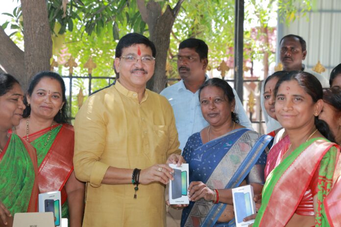 అంగన్వాడీ టీచర్లకు సెల్ ఫోన్ లు అందజేసిన ఆర్మూర్ ఎమ్మెల్యే పైడి రాకేష్ రెడ్డి