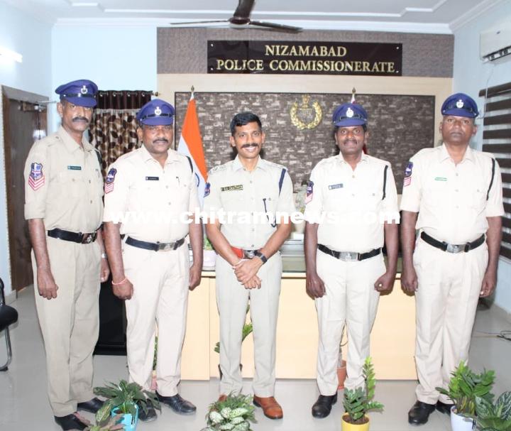 చిత్రం న్యూస్, నిజామాబాద్ బ్యూరో : నిజామాబాద్ జిల్లాలో నలుగురు కానిస్టేబుళ్లకు హెడ్ కానిస్టేబుల్ గా పదోన్నతి లభించింది. ప్రమోషన్ పొందిన వారిని పోలీసు కమిషనర్ సాయి చైతన్య సోమవారం తన చాంబర్లో అభినందించారు. తెలంగాణ రాష్ట్ర డీజీపీ శివధర్ రెడ్డి ఆదేశానుసారము నిజామాబాద్ పోలీస్ కమిషనరేట్ పరిధిలోని కానిస్టేబుల్ నుండి హెడ్ కానిస్టేబుల్ గా నలుగురు ప్రమోషన్ పొందారు.గత కొంతకాలంగా ప్రమోషన్ గురించి ఎదురు చూస్తున్న కానిస్టేబుల్ లకు హెడ్ కానిస్టేబుల్ గా ప్రమోషన్ రావడంతో సిబ్బంది ఆనందం వ్యక్తం చేశారు .ఈ సందర్భంగా ప్రమోషన్ పొందినటువంటి హెడ్ కానిస్టేబుల్ లకు పోలీస్ కమిషనర్ శుభాకాంక్షలు తెలిపారు. పదోన్నతి పొందిన వారిలో వర్ని పోలీస్ స్టేషన్ కు చెందిన  సికె.ఆనంద్, జిల్లా కేంద్రంలోని రెండవ టౌన్ పోలీస్ స్టేషన్ లో విధులు నిర్వర్తిస్తున్న వి. సతీష్, ధర్పల్లి పోలీస్ స్టేషన్ కు చెందిన కె.నవీన్ కుమార్, నగరంలోని వన్ టౌన్ పోలీస్ స్టేషన్ కు చెందిన శశి ప్రసాద్ లు ఉన్నారు.