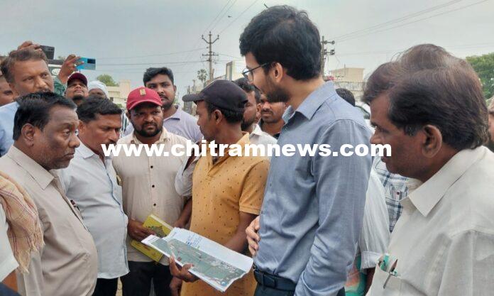 చిత్రం న్యూస్, నిజామాబాద్ బ్యూరో: తొర్తి గ్రామ రైతులు ప్రజావాణిలో దరఖాస్తు చేసిన విషయం విచారణ కోసం ఆర్మూర్ సబ్ కలెక్టర్ అభిగ్యాన్ మమాల్వీయ మంగళవారం తొర్తి గ్రామాన్ని సందర్శించారు. తమ గ్రామానికి చెందిన మురుగు కాలువ (డ్రైనేజీ) నీళ్ళు తమ పంట పొలాలకు వచ్చి నష్టము జరుగుతుందని రైతులు సోమవారం ప్రజావాణిలో దరఖాస్తు చేసుకున్నారు. ప్రజావాణిలో విన్నవించిన ప్రకారం రైతుల పంట పొలాలను, మురుగు కాలువను సబ్ కలెక్టర్ పరిశీలించారు. అనంతరం తొర్తి గ్రామ సర్పంచ్ కౌడ పెద్ద భూమేశ్వర్, బాధిత రైతులు, గ్రామపెద్దలు, గ్రామస్తులతో మాట్లాడి ఈ సమస్యను సామరస్యంగా పరిష్కరించుకోవాలని సూచించారు. ఈ కార్యక్రమంలో ఏర్గట్ల మండల తహసీల్దార్ జె మల్లయ్య, ఎంపీడీవో వెంకటేశ్వర్ము ఇరిగేషన్ ఈ ఈ, ఎంపీఓ శివ చరణ్, ఏఈ ఇరిగేషన్, ఉప సర్పంచ్ సుమన్ గౌడ్, గామ పంచాయతీ కార్యదర్శి అనిల్, గ్రామ రైతులు, గ్రామస్తులు పాల్గొన్నారు.