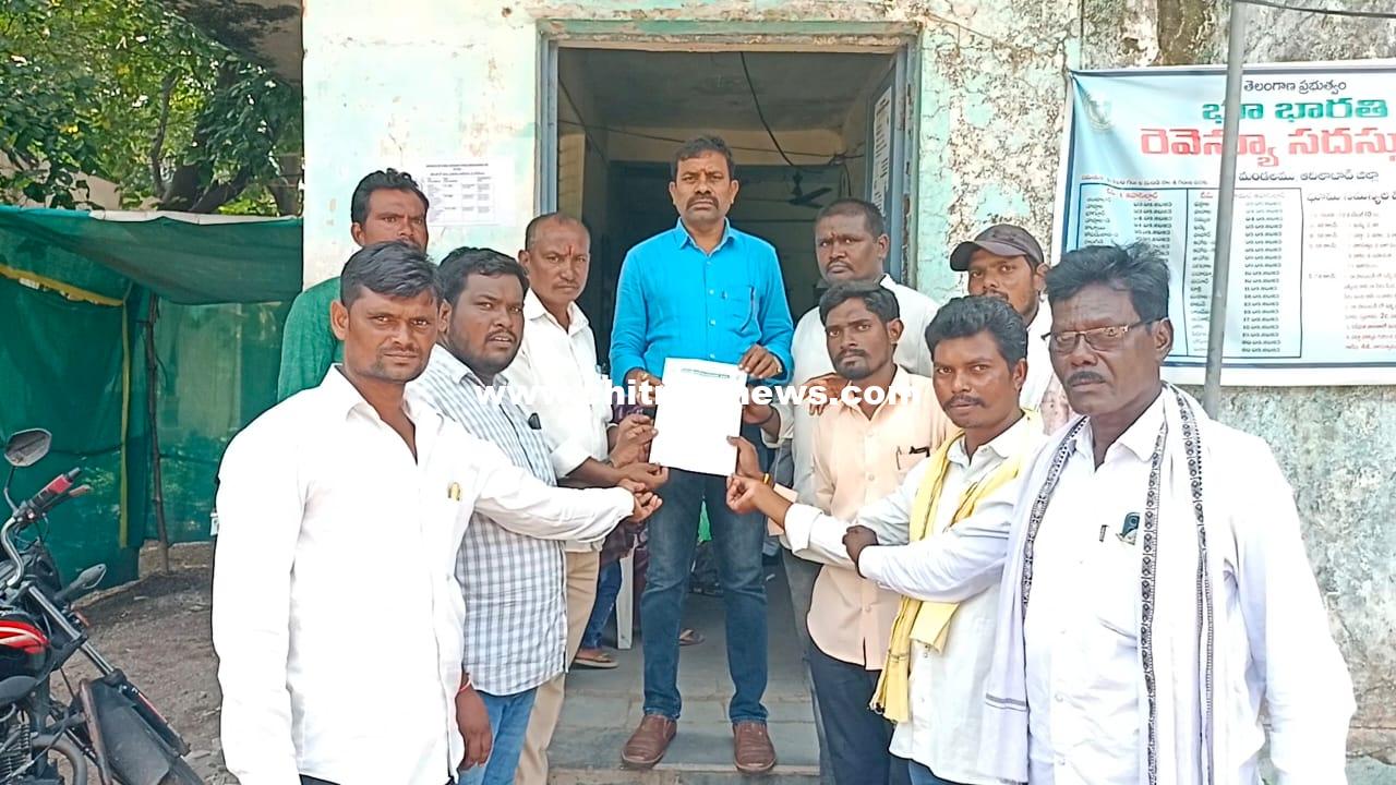 బేల తహసీల్దార్ రఘునాథ్ రావ్ కు వినతిపత్రం అందజేస్తున్న ఆదివాసీ సంక్షేమ పరిషత్ జనరల్ సెక్రటరీ నందకుమార్