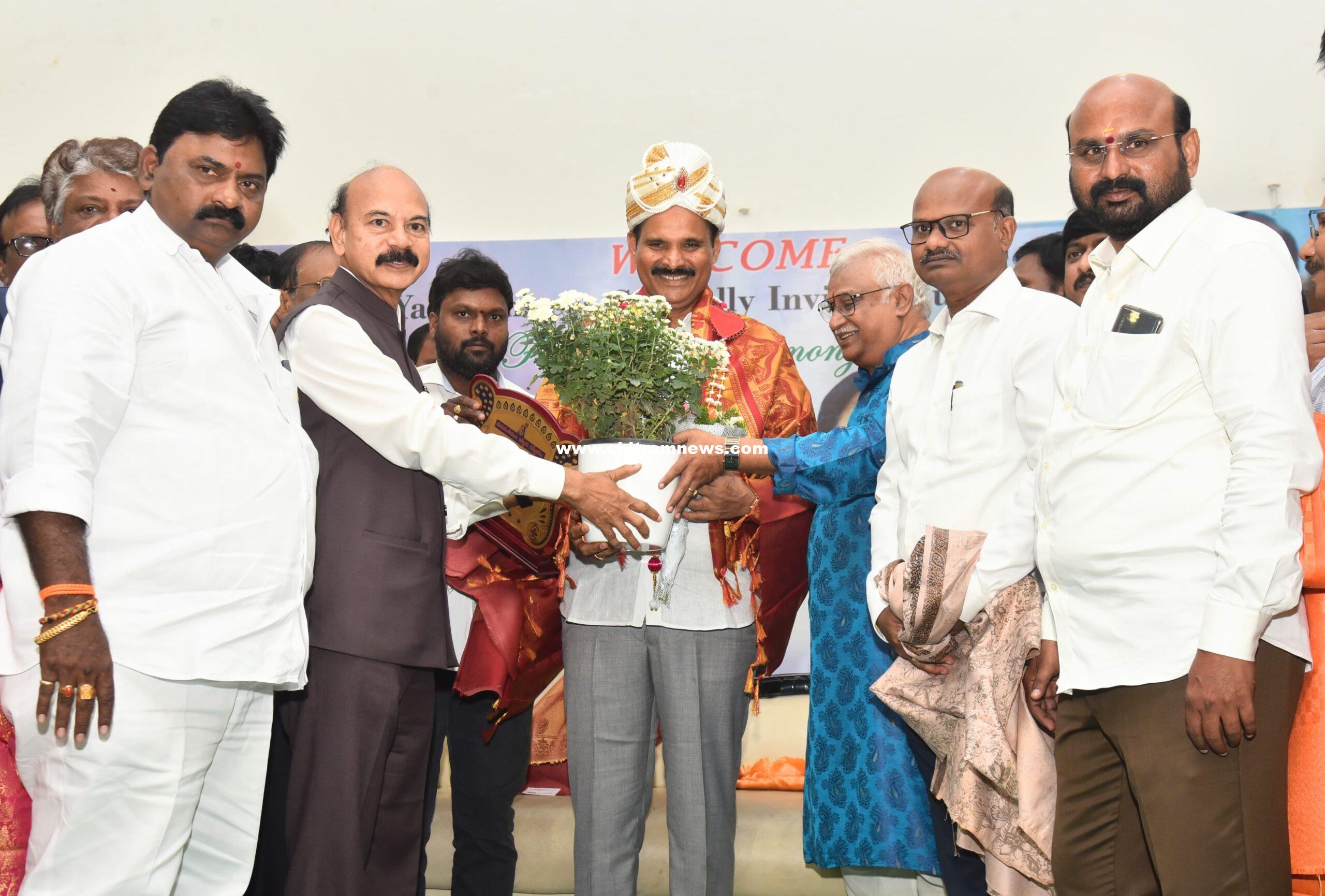 మంత్రి కొలుసు పార్థ సారధిని సన్మానిస్తున నాయకులు