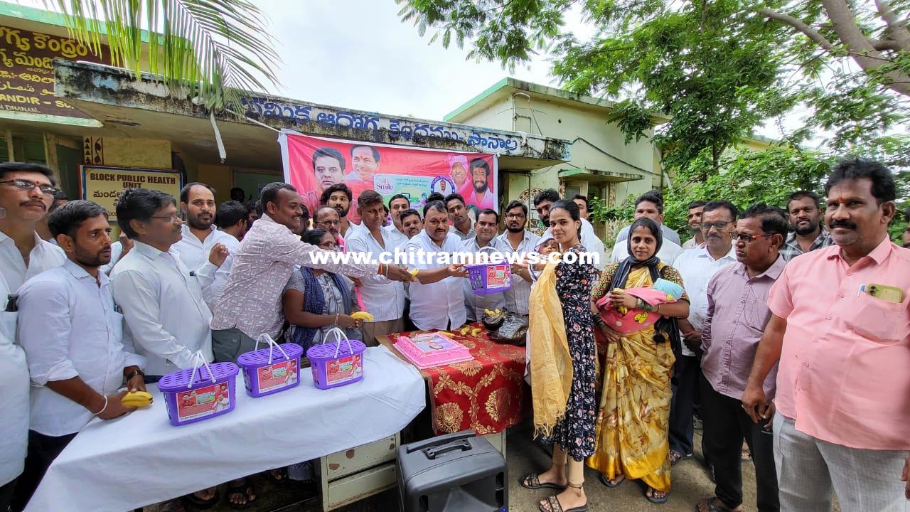 కేటీఆర్ పుట్టినరోజు సందర్భంగా బాలింతలకు కేసీఆర్ కిట్ పంపిణీ చేస్తున్న తుల శ్రీనివాస్ వెల్ఫేర్ సొసైటీ అధ్యక్షుడు తుల శ్రీనివాస్