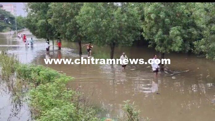చిత్రం న్యూస్, బాసర: నిర్మల్ జిల్లాలోని పవిత్రమైన పుణ్యక్షేత్రం శ్రీ జ్ఞాన సరస్వతి బాసరలో గోదారమ్మ వరద బీభత్సం సృష్టిస్తోంది. శాంతించామ్మ అంటూ బాసర మండలంలోని గ్రామాల ప్రజలు వేడుకుంటున్నారు. బాసరలో ఒకపక్క శారదియా శరన్నవరాత్రి ఉత్సవాలు జరుగుతుండడం మరోపక్క రైతులు, వ్యాపారుల కష్టాలు మొదలయ్యాయి. బాసర శ్రీ జ్ఞాన సరస్వతి అమ్మవారి ఆలయంలో శరన్నవరాత్రి ఉత్సవాలు 3వ రోజుకు చేరాయి. ఉత్సవాలను పురస్కరించుకొని గోదావరి నది స్నానానికి వచ్చే భక్తులు నది బ్యాక్ వాటర్ వల్ల రహదారి వెళ్లే మార్గాలు, పుష్కర ఘాట్లు నీట మునిగాయి. గంట గంటకు గోదావరి నది ప్రవాహం పెరగడంతో అధికారులు ముందు జాగ్రత్తగా ఎవరు అటువైపు వెళ్ళకుండా నది బ్యాక్ వాటర్ వల్ల రహదారులకు అడ్డుకట్టుగా బారికేడ్లను ఏర్పాటు చేశారు. ఎప్పటికప్పుడు పోలీసు, రెవెన్యూ శాఖ ప్రజలను అప్రమత్తం చేస్తున్నారు. గోదావరి నది లోతట్టు ప్రాంత రైతులు, ఆలయ పరిధిలో ఉన్న దుకాణ యజమానులు నీటి ప్రవాహంతో వ్యాపార కొనుగోలు లేక తీవ్రంగా నష్టపోయామని అంటున్నారు. మండల పరిధిలోని పలు గ్రామాల ప్రజలు తమ అవసరాల కోసం ప్రభుత్వ, ప్రైవేటు కార్యాలయాలకు వచ్చేందుకు గత 15 రోజుల నుండి ఐదు గ్రామాలకు రాకపోకలు నిలిచిపోయాయి. ఇప్పటికైనా గోదారమ్మ తల్లి శాంతించమ్మ అని గ్రామాల ప్రజలు వేడుకుంటున్నారు.