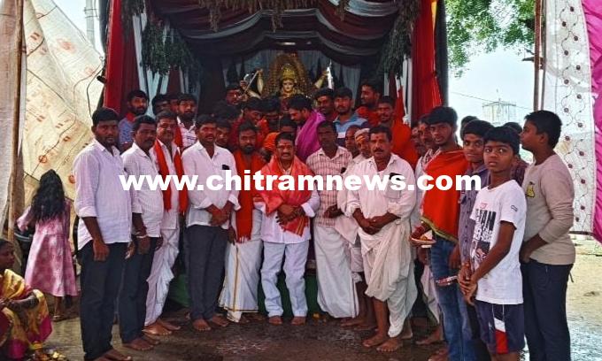 చిత్రం న్యూస్, భైంసా: నిర్మల్ జిల్లా భైంసా మండలంలోని దేగాం గ్రామంలో శరన్నవరాత్రి వేడుకల్లో భాగంగా శుక్రవారం నిర్వహించిన దుర్గామాత పూజ లో మాజీ ఎమ్మెల్యే విఠల్  రెడ్డి పాల్గొన్నారు. త్రినేత్ర యూత్ సభ్యులు, గ్రామస్థులు ఆహ్వానం మేరకు ఆయన గ్రామానికి వచ్చి పూజలో పాల్గొన్నారు. స్థానిక త్రినేత్ర యూత్ సభ్యులు , గ్రామస్థులు ఘన స్వాగతం పలికారు. అనంతరం దుర్గామాత పూజలో పాల్గొని తీర్థప్రసాదాలు స్వీకరించారు. తర్వాత ఆయన్ను త్రినేత్ర యూత్ సభ్యులు, గ్రామస్తులు పూలమాలలు, శాలువాతో ఘనంగా సన్మానించారు. ఈ కార్యక్రమంలో మాజీ సర్పంచి బీ.శ్రీను, వీడిసీ అధ్యక్షుడు లింగన్న, గడోళ్ల నరేష్, భోజన్న, జయందర్, గణేష్, మహేష్, సంతోష్, శ్రీకాంత్, అచ్యుత్, సతీష్, నవీన్, సోను తధితరులు పాల్గొన్నారు.
