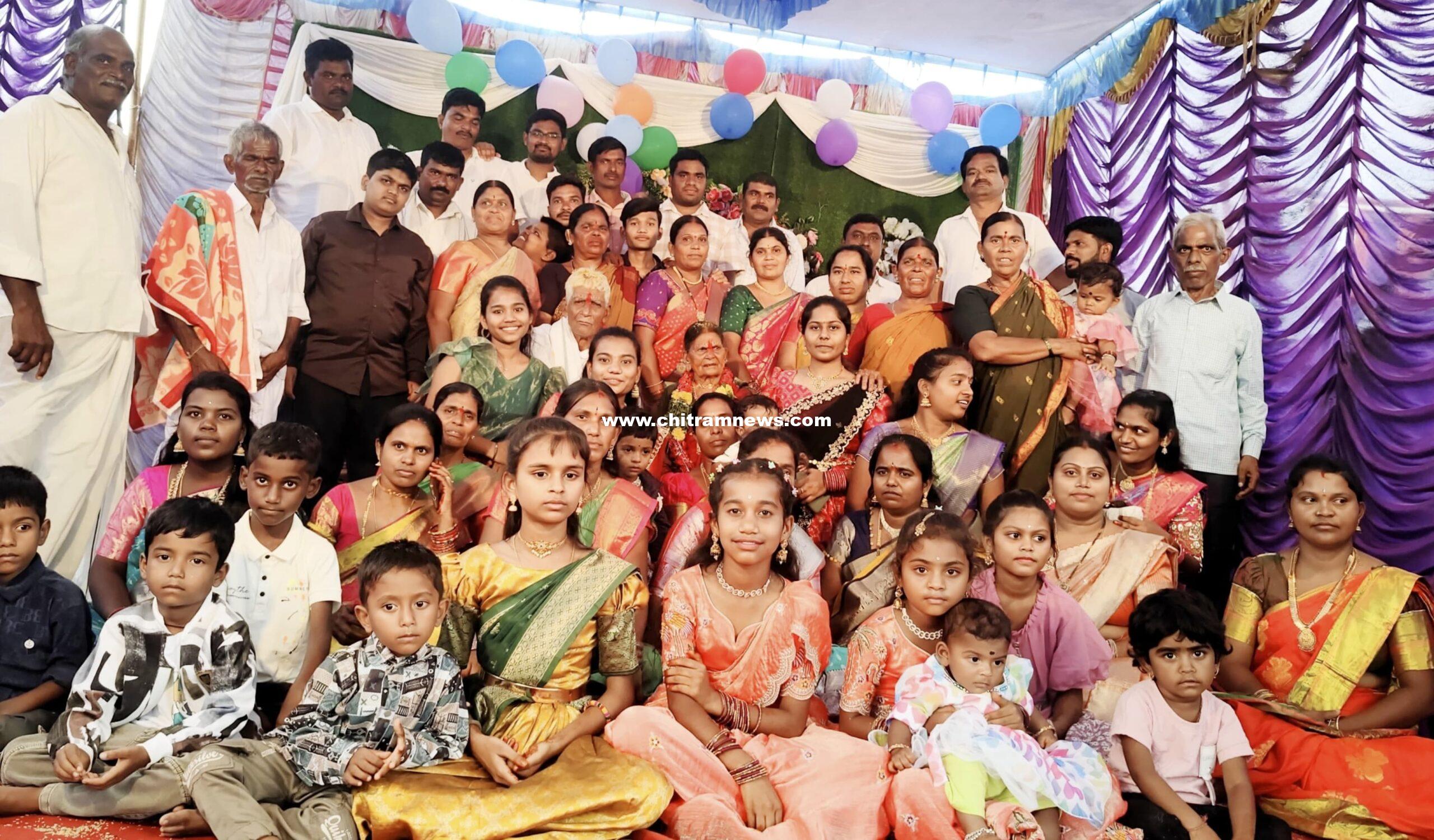 చిత్రం న్యూస్,నేరడిగొండ: ఆదిలాబాద్ జిల్లా నేరడిగొండ మండలంలోని కుమారి గ్రామంలో పెంట రాజన్న- రుక్మాబాయిలకు షష్టిపూర్తి నిర్వహించారు. రాజన్న (95) రుక్మాబాయి (90) దంపతులకు ముగ్గురు కుమారులు, ఆరుగురు కుమార్తెలు. కోడళ్ళు, అల్లుళ్ళు, మనుమలు, మనుమరాలు, మునిమనుమలు ఇలా అంత కలిపి 68 మంది కుటుంబ సభ్యులు ఉన్నారు. అయితే తాతకు- అమ్మకు షష్టిపూర్తి చేయాలని అనుకున్నారు. ఆదివారం ఘనంగా షష్టిపూర్తి నిర్వహించి తాత -అమ్మకు పెళ్లి కార్యక్రమం నిర్వహించి అన్నదాన కార్యక్రమం చేశారు. మొత్తం కుటుంబ సభ్యులు ఒకే వేదికలో ఇలా కలవడం చాలా సంతోషంగా ఉందని, అందరూ కలిసి ఉండాలని రాజన్న – రుక్మాబాయిలు కుటుంబ సభ్యులను దీవించారు. ఇందులో పెంట రమణయ్య, పెంట ప్రభాకర్, పెంట పెద్దక్క, మండల చిన్నమ్మి, పొట్టవతి ప్రేమల, వేముల కల, గాండ్ల రాజమణి, మెరుగు విజయలక్ష్మి,-స్వామి, పెంట కల్పనా- సునీల్, మండల ప్రేమల -ప్రవీణ్, మండల స్రవంతి – నవీన్, వేముల శ్రీకాంత్, పొట్టవతి సాయికిరణ్. గాండ్ల హర్షవర్ధన్, అవినాష్, మణికంఠ, లాస్మన్న, శంకర్, రాజేశ్వర్, లక్ష్మణ్, స్పందన, మనశ్విని,విగ్నేష్,తదితరులు కుటుంబ సభ్యులు ఉన్నారు.