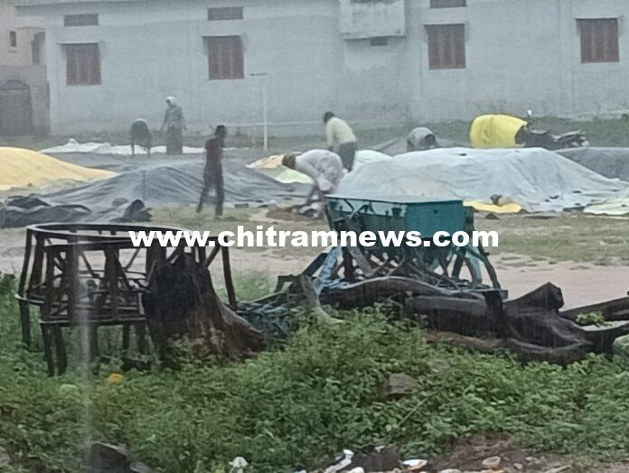 చిత్రం న్యూస్, బాసర: నిర్మల్ జిల్లా బాసర మండలంలోని ఆయా గ్రామాల్లో ఆదివారం వర్షం కురిసింది. ఆరుగాలం కష్టపడి పండించిన పంట చేతికి వచ్చే సమయంలోనే భారీ వర్షం కురవడంతో రైతన్నలు తీవ్ర ఇబ్బంది పడుతున్నారు. సోయా పంట వచ్చిందని ఆరబోయే సమయానికి అకాల వర్షం కురవడంతో రైతన్నలకు ఏం చేయాలో అర్థం కావడం లేదు. వర్షాలు రైతుల కంటిమీద కునుకులేకుండా చేస్తున్నాయి. మొన్నటి వరకు భారీ వర్షాలతో పంటలు దెబ్బతినగా.. ఇప్పుడేమో చేతికి అందిన సోయా పంట ఆరబోయనీయకుండా వరుణుడు ప్రతాపం చూపిస్తున్నాడు. ఎప్పుడొస్తుందో తెలియని వర్షం నుంచి పంటలను కాపాడుకునేందుకు రైతులు కల్లాల వద్దే పడిగాపులు కాస్తున్నారు. పంట కుప్పలపై టార్ఫాలిన్లు కప్పుతూ పంటను కాపాడుకునేందుకుకు విశ్వ ప్రయత్నాలు చేస్తున్నారు.