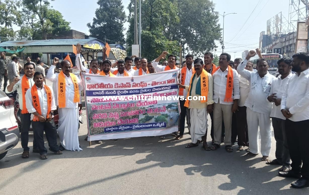 చిత్రం న్యూస్, బాసర:ప్రభుత్వం కొనుగోలు కేంద్రాలు ఏర్పాటు చేయలేదని నిరసిస్తూ భారతీయ కిసాన్ సంఘ్ (BKS) ఆధ్వర్యంలో బాసర, ముథోల్, తానూర్, బైంసా మండలాల రైతులు ప్రభుత్వ తీరుకు నిరసనగా ర్యాలీ చేపట్టారు. వరదలతో నష్టపోయిన రైతులను ప్రభుత్వం ఆదుకోవాలని, సోయా పంట చేతికి వచ్చిందని, సరైన మద్దతు ధర ఇవ్వకుండా ప్రతి పంటకు రైతులు ఇబ్బందులు పడుతున్నారన్నారు. ఇప్పటివరకు కొనుగోలు కేంద్రాలు ఏర్పాటు చేయలేదని, రైతులను ప్రభుత్వం పట్టించుకోవటం లేదని, అధికారులకు ఎన్ని వినతి పత్రాలు ఇచ్చినా చలనం లేదని మండిపడ్డారు. మంగళ వారం ముథోల్ లోని పశుపతినాత్ శివాలయంలో బసచేసి బుధవారం ఉదయం భైంసా సబ్ కలెక్టర్ కార్యాలయం ముందు నిరసన తెలుపనున్నారు.ప్రభుత్వం స్పందించకపోతే రైతులందరినీ ఏకం చేసి రాష్ట్రవ్యాప్తంగా తీవ్ర నిరసనను చేపడతామని భారతీయ కిసాన్ సంఘ్ నాయకులు హెచ్చరించారు. అంతకుముందు నిర్మల్ జిల్లా బాసర అమ్మవారి ఆలయంలో ప్రత్యేక పూజలు నిర్వహించారు.
