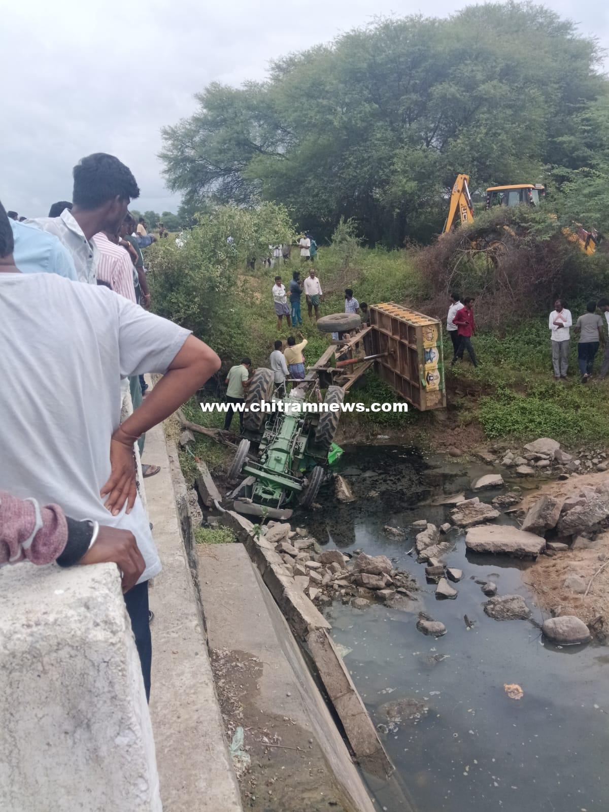 వంతెన పైనుంచి ట్రాక్టర్ బోల్తా