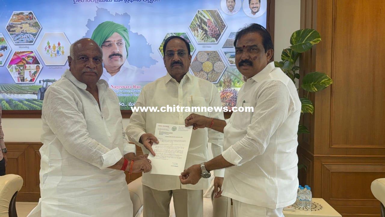 చిత్రం న్యూస్, హైదరాబాద్: రాష్ట్ర వ్యవసాయ శాఖ మంత్రి తుమ్మల నాగేశ్వర రావు తో గురువారం హైదారాబాద్ లో బీజేపి ఎమ్మెల్యేలు పాయల్ శంకర్, రామారావ్ పటేల్ సమావేశమయ్యారు. ఈ సందర్భంగా సోయాబీన్ రైతులు ఎదుర్కొంటున్న సమస్యలను మంత్రి దృష్టికి తీసుకెళ్లి త్వరితగతిన పరిష్కారం చూపాలని కోరుతూ వినతి పత్రం అందజేశారు. రైతుల ఇబ్బందులను సానుకూలంగా పరిశీలించి, తగిన చర్యలు తీసుకోవాలని మంత్రిని కోరారు. వ్యవసాయ శాఖ మంత్రి తుమ్మల సానుకూలంగా స్పందించారు. అనంతరం మంత్రి తుమ్మల నాగేశ్వరరావుకి ఎమ్మెల్యేలు నూతన సంవత్సర శుభాకాంక్షలు తెలియజేశారు.