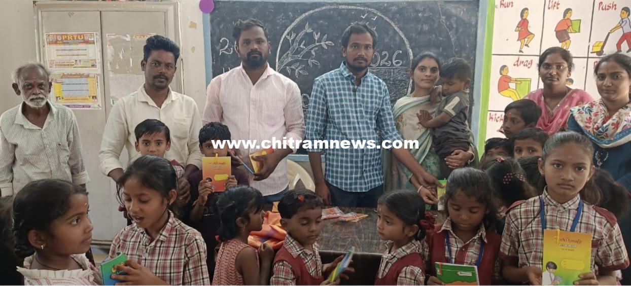 నోటుబుక్కులు, పెన్నులు పంపిణీ చేసిన సర్పంచ్ మాలేగం మధుప్రీతి