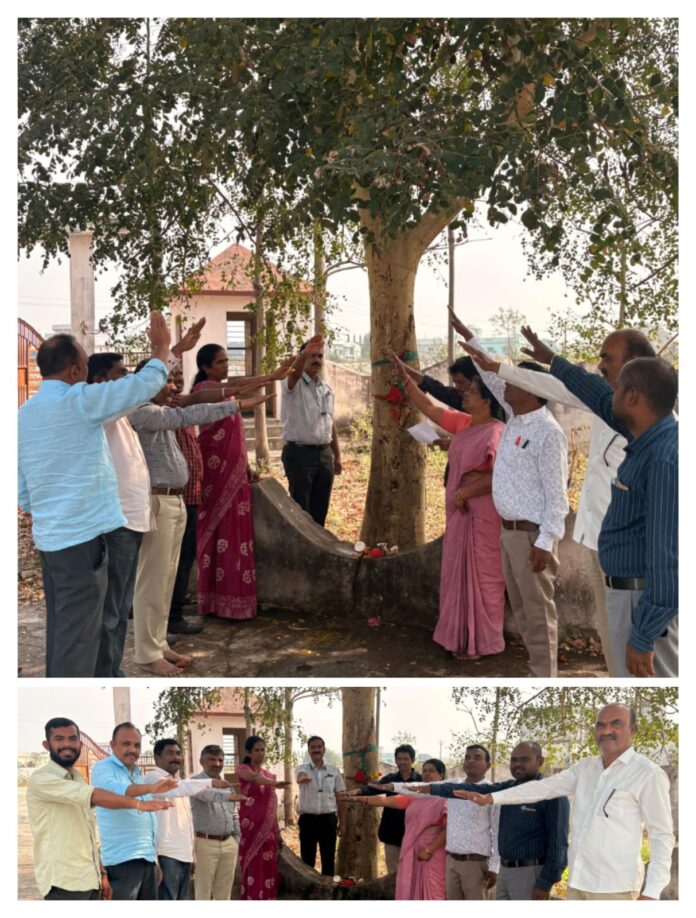 చిత్రం న్యూస్,ఇచ్చోడ: గ్రామ పొలిమేరల నుండి పట్టణ వీధుల వరకు పర్యావరణాన్ని కాపాడుకోవడమే ధ్యేయంగా “కౌన్సిల్ ఫర్ గ్రీన్ రెవల్యూషన్” మరియు “కమిషనరేట్ ఆఫ్ కాలేజ్ ఎడ్యుకేషన్” సంయుక్త ఆధ్వర్యంలో ఇచ్చోడ ప్రభుత్వ కళాశాలలో వినూత్న కార్యక్రమం నిర్వహించారు. కళాశాల ఆవరణలో ఏపుగా పెరిగిన ఒక మహా వృక్షాన్ని “పుడమి తల్లి”గా నామకరణం చేస్తూ, దానిని తమ ‘తల్లి వృక్షం’గా భావించి సంరక్షిస్తామని విద్యార్థులు, అధ్యాపకులు ఘనంగా ప్రతిజ్ఞ చేశారు.