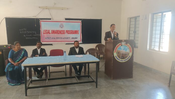 చిత్రం న్యూస్, జైనథ్: రోడ్డు భద్రత ప్రతి ఒక్కరి బాధ్యత అని ముందుస్తు జాగ్రత్తలతోనే రోడ్డు ప్రమాదాలు నివారించవచ్చని చీఫ్ లీగల్ ఎయిడ్ డిఫెన్స్ కౌన్సిల్ దాసరి గంగారాం అన్నారు. 37వ జాతీయ రహదారి భద్రత మాసోత్సవాల్లో భాగంగా గురువారం మండల కేంద్రంలోని ఆదర్శ పాఠశాలలో రహదారి భద్రతా నియమాలు పాటించాలని తెలుపుతూ న్యాయ విజ్ఞాన సదస్సు నిర్వహించారు. ఈ సందర్భంగా చీఫ్ లీగల్ ఎయిడ్ డిఫెన్స్ కౌన్సిల్ దాసరి గంగారాం మాట్లాడుతూ.. రోడ్డు ప్రమాదాలను తగ్గించడమే లక్ష్యంగా జిల్లా న్యాయసేవాధికార సంస్థ పని చేస్తోందన్నారు. లైట్ మోటార్ వెహికల్ నడిపే వాహనదారులు డ్రైవింగ్ సీట్ బెల్ట్ తప్పకుండా ధరించాలన్నారు. సెల్ ఫోన్లో మాట్లాడుతూ ప్రమాదాల బారిన పడవద్దని పిల్లలు తమ తల్లి తండ్రులకు చెప్పాలన్నారు. డ్రైవింగ్ లైసెన్స్ లేకుండా వాహనాలు నడపవద్దన్నారు. నిబంధనలు పాటించని వారిపై చట్టప్రకారం కఠిన చర్యలు తీసుకోబడతాయన్నారు. ఈ అవగాహన సదస్సులో డిప్యూటీ లీగల్ ఎయిడ్ డిఫెన్స్ కౌన్సిల్ అరుగుల అశోక్, అసిస్టెంట్ లీగల్ఎయిడ్ డిఫెన్స్ కౌన్సిల్ ఉమేష్ రావు డోలె,విద్యార్థులు, ఉపాధ్యాయులు పాల్గొన్నారు.